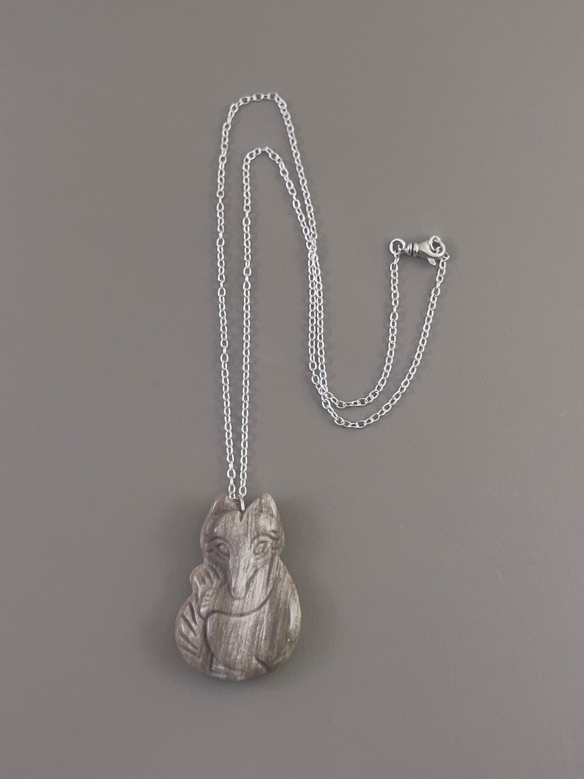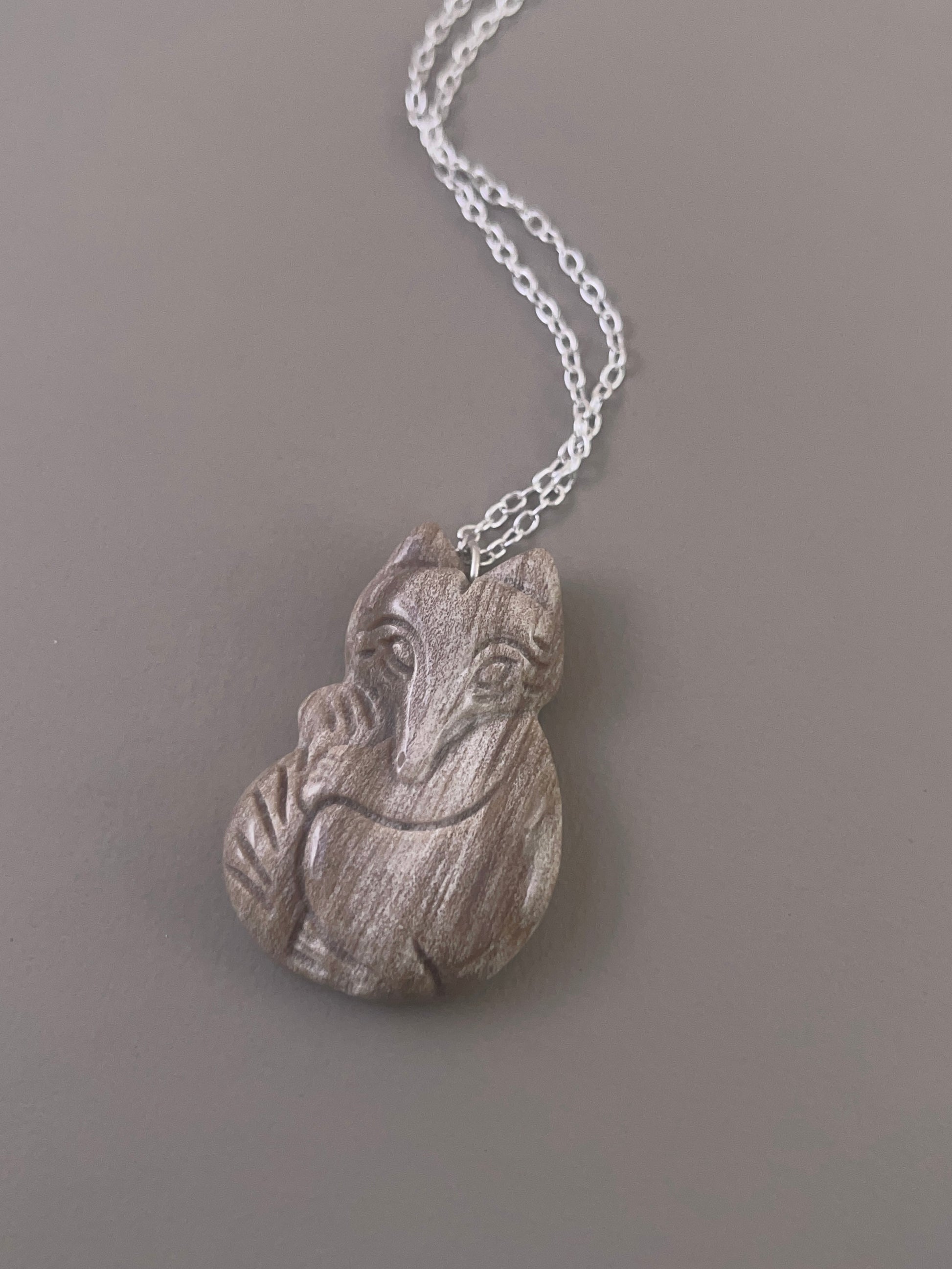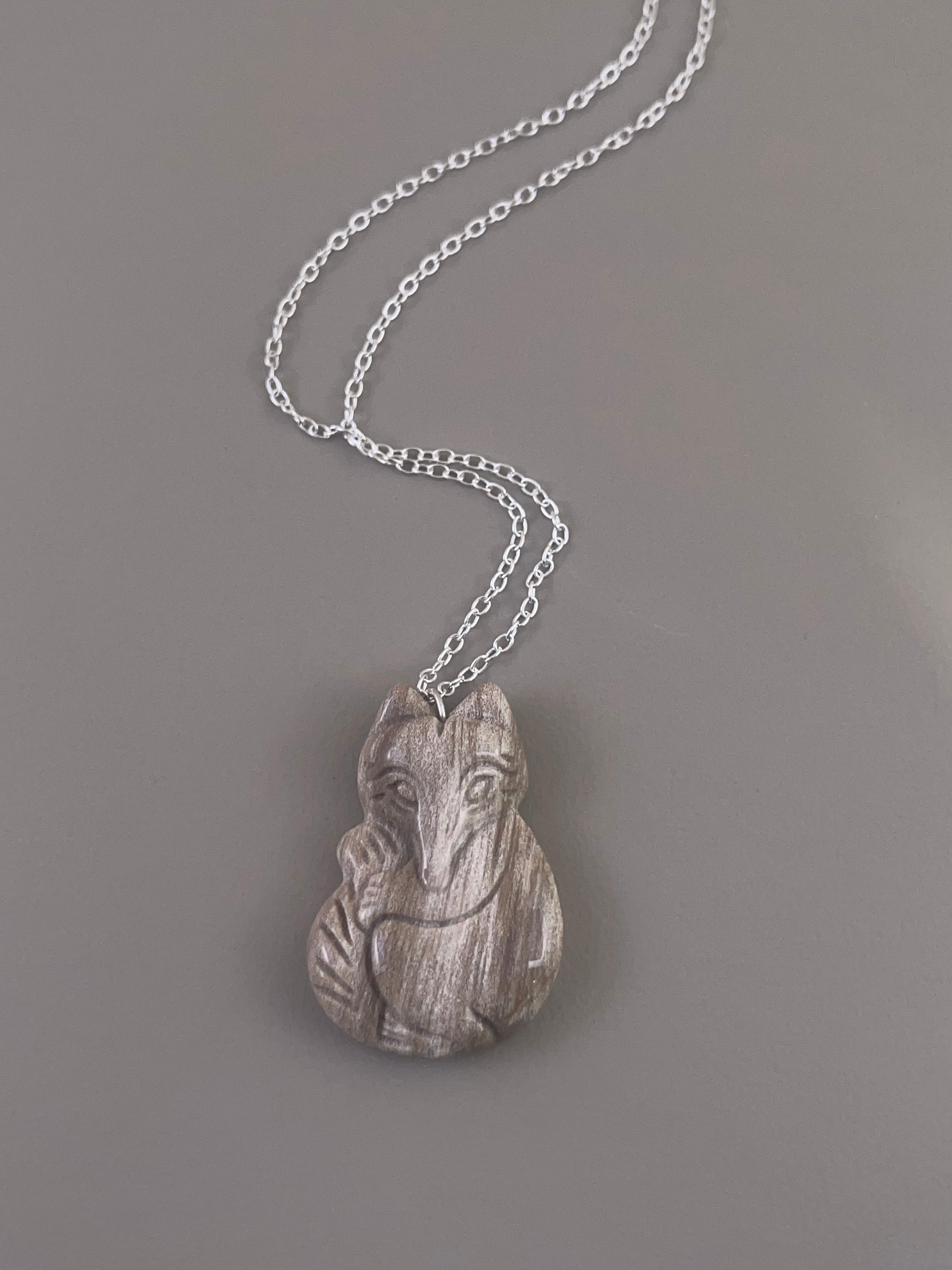 Petrified Wood Fox Necklace - Brown