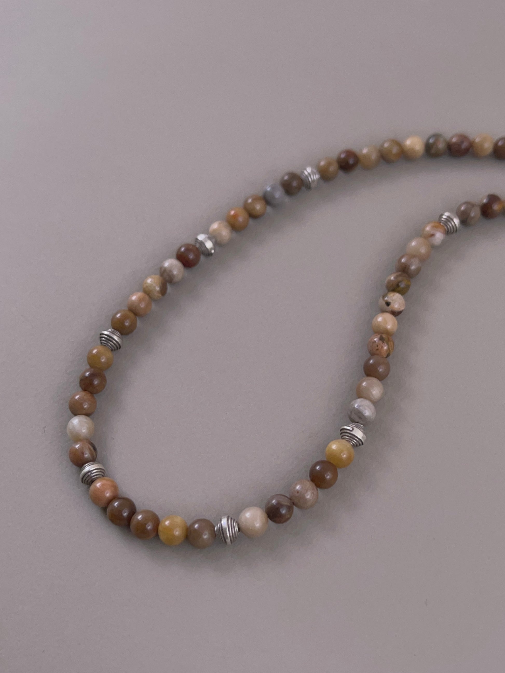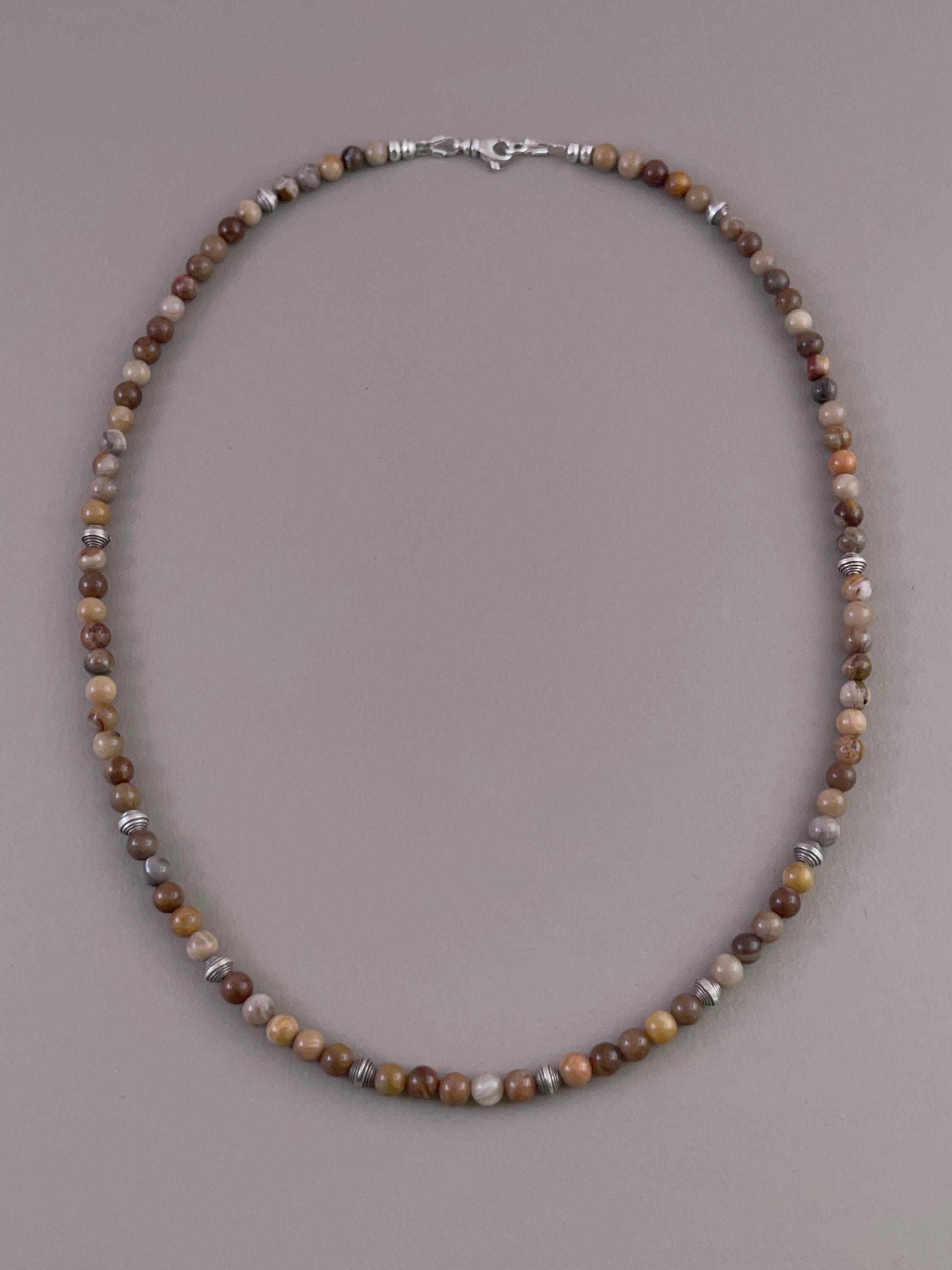 Materials: Sterling silver findings, Thai silver & Petrified Wood beads.