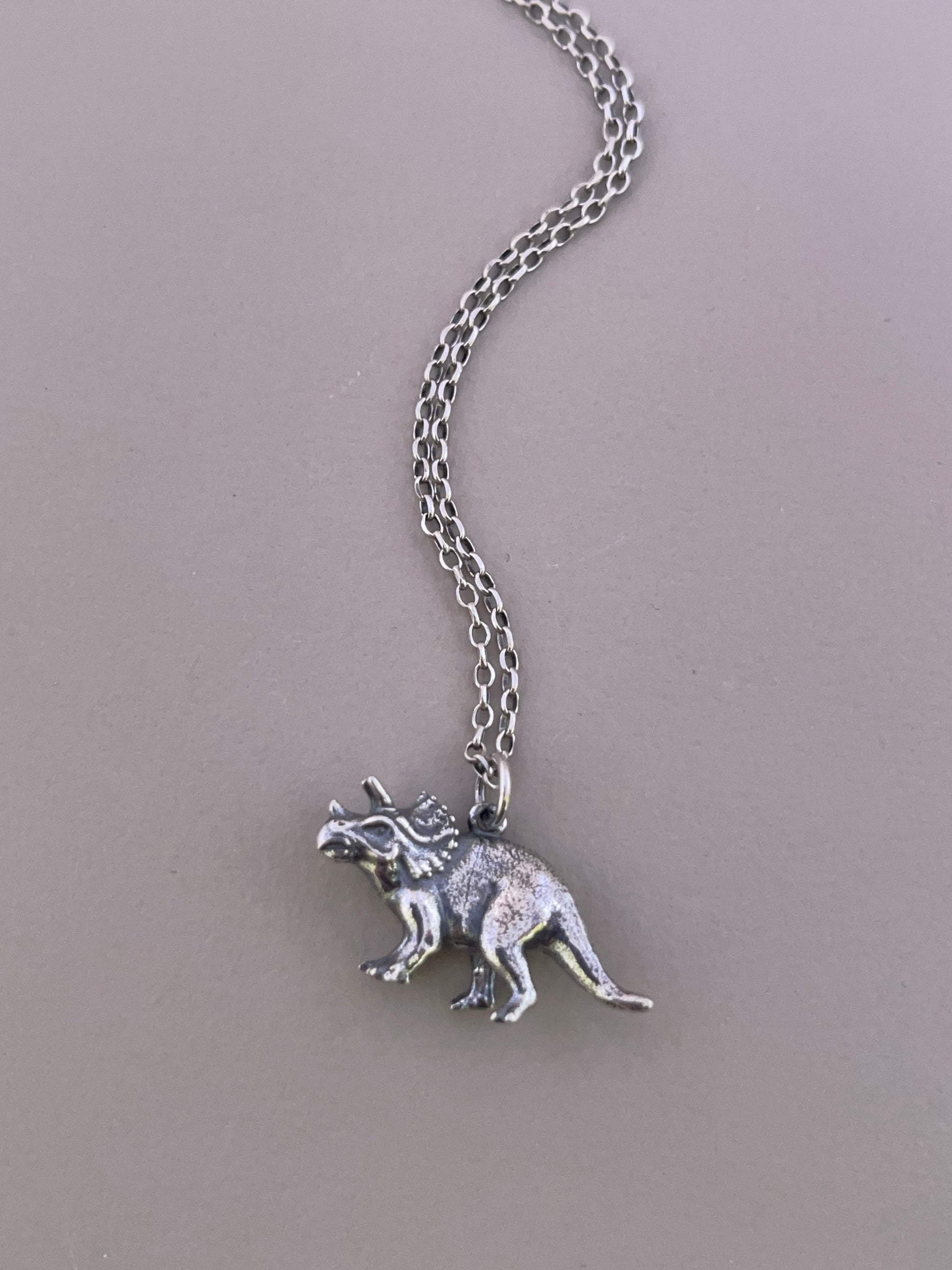 Silver Triceratops Pendant